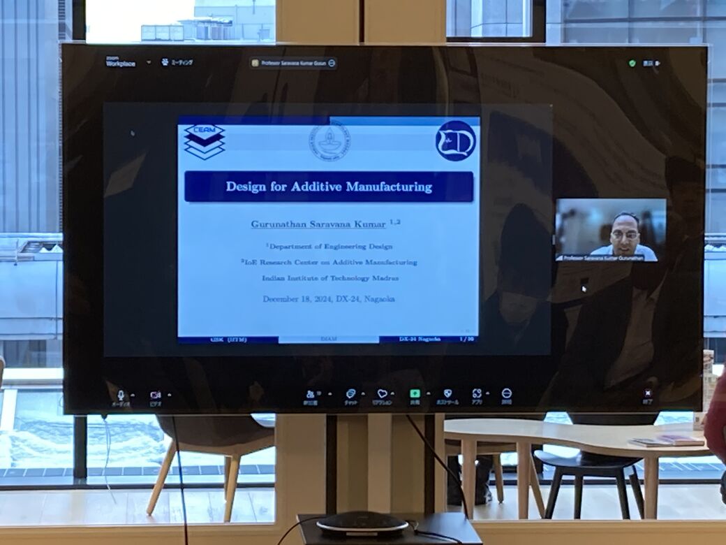 As part of an Inter-University Exchange Project, the "DX Manufacturing Workshops 2024"--organized by students from both NUT and the Indian Institute of Technology Madras (IITM)--was held on December 18 (Wednesday) at Miraie Nagaoka in a hybrid format comprising both on-site and online participation.