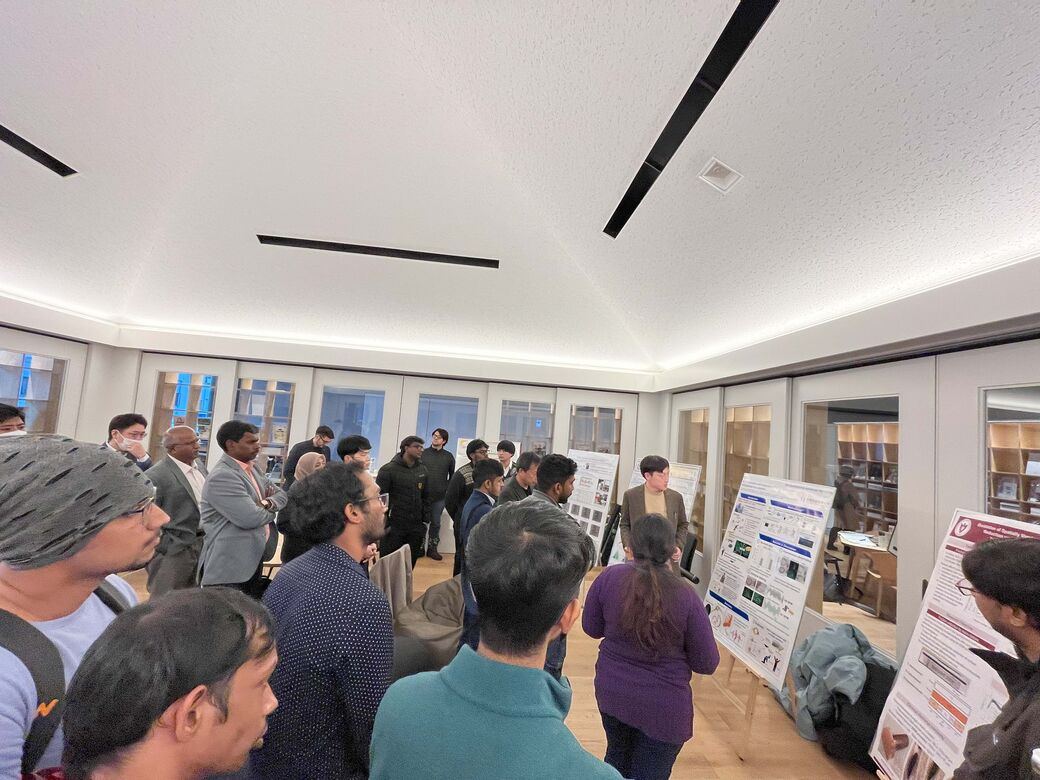 Researchers gave presentations on "Design of Bioinert Surfaces by Informatics and Robotics", "Design for Additive Manufacturing", and "Cold Spraying Technology for Additive Manufacturing". After the presentations, there was a poster session in which participating students presented their research to one another. This was followed by a group discussion on "DX for Industry" and "DX for 3D Bio-surface Design", in which the participants engaged in lively Q&A and debates.