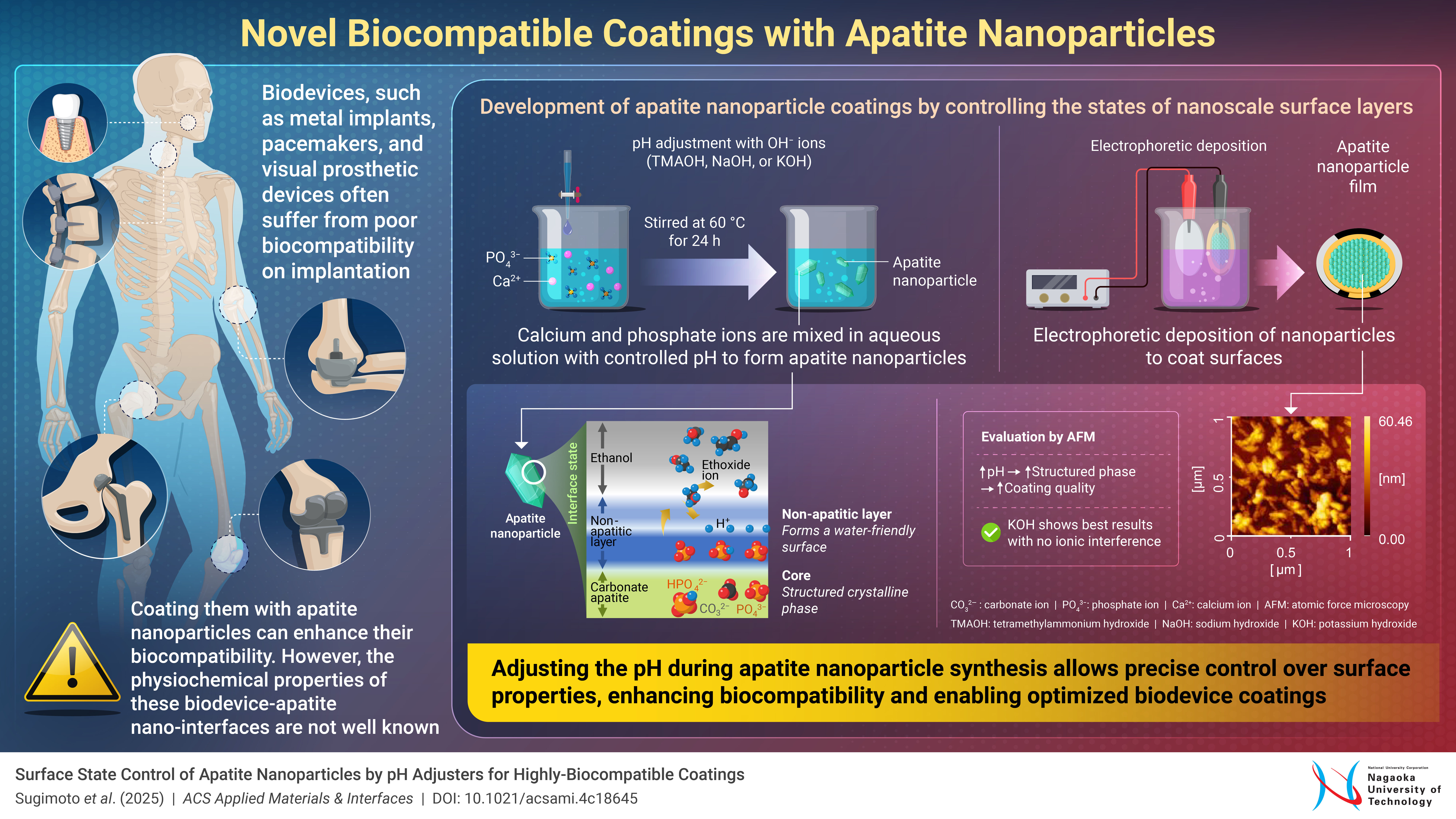 To overcome this challenge, researchers at Nagaoka University of Technology, Japan have developed a method for synthesizing surface-modified apatite nanoparticles that results in improved cell adhesion, offering new possibilities for the next generation of biocompatible medical implants. Led by Dr. Motohiro Tagaya, Associate Professor at the Department of Materials Science and Bioengineering at Nagaoka University of Technology, Japan, this research aims to enhance the performance of apatite coatings and advance the field of biocompatible materials for medical devices. The findings of this study were published online in ACS Applied Materials & Interfaces, on January 13, 2025, and in Volume 17, Issue 4 of the journal on January 29, 2025. Along with Dr. Tagaya, Mr. Kazuto Sugimoto from Nagaoka University of Technology, Dr. Tania Guadalupe Peñaflor Galindo from Sophia University, and Mr. Ryota Akutsu from Nagaoka University of Technology were also a part of this research team.
