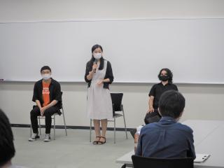リー ヴ ドゥックさん(ベトナム出身)、ビルグウンマ ミャグマルドラムさん(モンゴル出身)、マルティネズ サンチェズ アレハンドロ イシドロさん(メキシコ出身)の3名は、環境問題や社会問題等に関して日本に来て驚いたことや感じたこと、出身国の現状や課題・取組について高校生からのインタビューに答える形で紹介を行いました。また、インタビューに基づいて行われた高校生のグループワークでは、積極的にアドバイスを行いました。