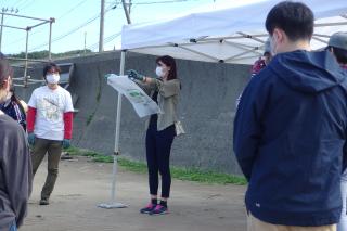 2回目の清掃実施となった今回は学生SDGsプロモーターを中心とした本学関係者のほか地元の方にもご参加いただき、海岸清掃をしながら海について・科学について学ぶことをコンセプトに、NPO法人Lily&Marry’S理事長である山田彩乃さん(本学Kawa理科*研究員)と「てらどまり若者会議~波音~」のご協力のもと実施しました。