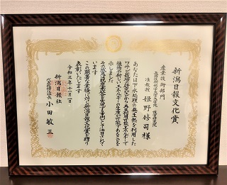 技術科学イノベーション専攻 姫野修司准教授が、新潟日報文化賞<産業技術部門>を受賞しました。本賞は、新潟県の文化、産業の発展に寄与する顕著な業績をあげた個人や団体に贈られます。授賞式は11月1日に新潟日報メディアシップにて行われました。