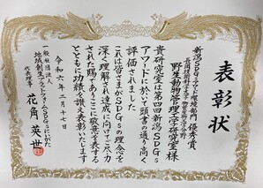 野生動物管理工学研究室が第4回新潟SDGsアワードにおいて環境部門優秀賞を受賞しました