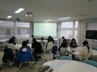 本学の勝身特任講師による本学のUNAI SDGsハブ大学としての取組紹介に続き、児童が深沢小学校の紹介や深沢地域ついての魅力と課題について発表しました。その後、参加者が3グループに分かれ、各グループにおいて児童の司会のもとでテーマに沿った意見を出し合いました。最後に各グループから話し合いのまとめが発表され、お互いの考えを共有しました。