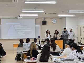 交流会の冒頭では、スリランカ、バングラデシュ、中国からの本学の大学院留学生が自己紹介を行い、各国で直面しているSDG3に関する課題をテーマにしたプレゼンテーションを行いました。留学生たちは、自国の現状や課題をわかりやすく説明し、問題提起を行いました。