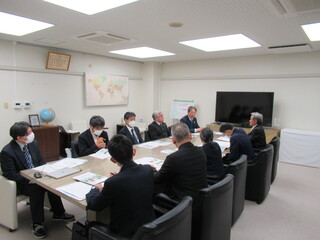 今年度は、深才下宿貸間組合から江口組合長をはじめ5名の方に大学にお越しいただき、鎌土学長をはじめとする執行部と「開学50周年を迎えるにあたり、人口減少や高齢化が進んでいるなか学生数を維持していくための方策」「今後の留学生の受入」「学生宿舎の運営」について、活発な意見交換を行いました。鎌土学長から、本学の学生数の動向、受験生に本学を選んでもらうための広報の重要性、今後の留学生の受入の方針、学生宿舎など老朽化への対策について説明がありました。また、佐藤副学長・事務局長から、学生宿舎等を建て替える際には、深才下宿貸間組合と意見交換をさせていただくのでご協力をお願いしたいと説明がありました。