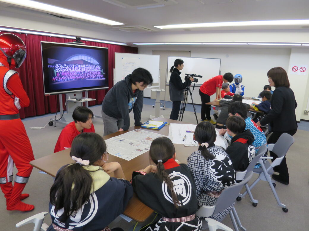 この交流会は、深沢小学校の児童が本学の学生に深沢地域にある伝統的な祭りを知ってもらうこと、少子化・人口減少により祭りの継続が困難になっていることから、技大祭を盛り上げている実行委員との交流で課題解決の手がかりをつかみたいというねらいで開催に至ったものです。本学からは、技大祭を運営している技大祭実行委員会の所属学生が参加しました。