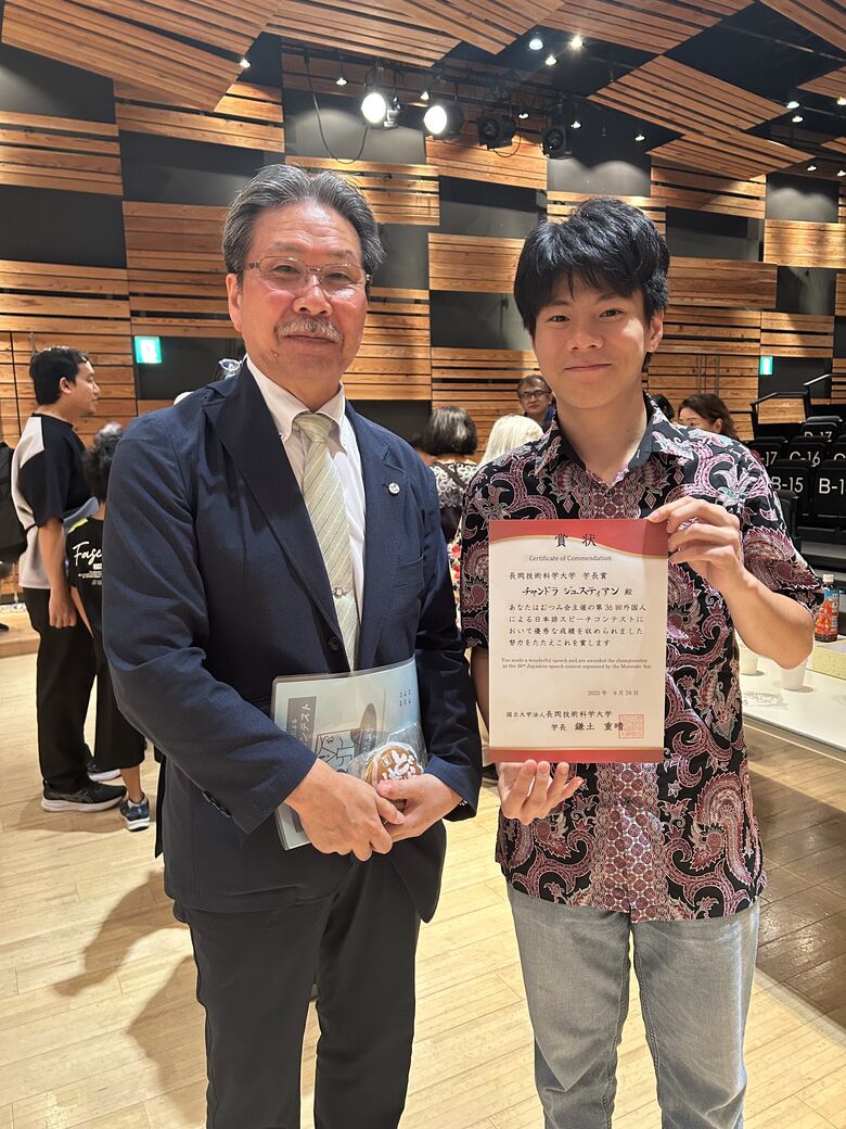 長岡技術科学大学学長賞:学部 物質生物工学分野4年 チャンドラ ジュスティアンさん(インドネシア)