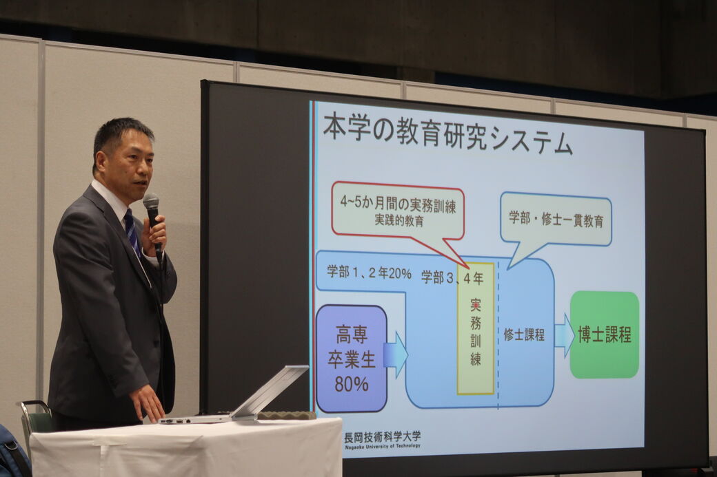 オープニングセレモニーでは、本学の鎌土学長が出席し、挨拶とテープカットを行いました。また、ステージプログラムでは、木村宗弘教授、平賀仁上席URA、齋藤祐功URAが登壇し、それぞれステージで、本学の実務訓練制度、DXRものづくりプラットフォーム、J-PEAKS等についてプレゼンテーションを行いました。