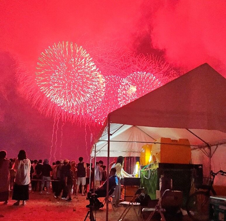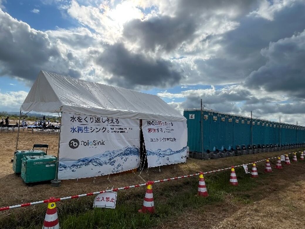 花火会場の手洗い用水の補充が困難であるという課題に対し、水の循環浄化が可能なウォーターチェンジャー®の設置を、令和4年から実施しており、今年は5台が設置されました。
