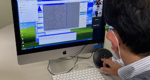 喜多准教授が機器を操作し、zoomを用いて観察画面を共有して対話をしながら測定を行いました。