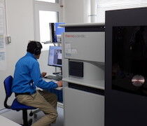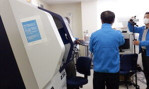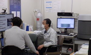 豊田技術専門職員が機器オペレーターを担当し、本事業コーディネーター佐藤教授と本学の齊藤(信)准教授も参加して測定方法等議論をしながら観察を行いました。