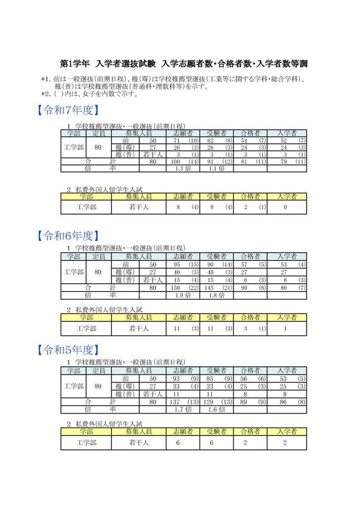 最近の志願者数・合格者数・入学者数(5年一貫制博士課程)