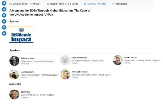 From our university, Dr. KATSUMI Mami UEA participated in parallel session of the annual meeting "Advancing the SDGs Through Higher Education: The Case of the UN Academic Impact (UNAI)" as an online panelist on 25th June (Sat).