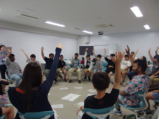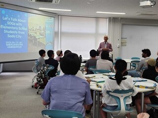 After trying a university cafeteria meal at Cafeteria 1, the children participated in a p4c (philosophy for children) session on the SDGs. Following a greeting by Prof. Matsubara (Director, Liaison Office for Secondary Schools, Elementary and Junior High School Support WG), the children introduced Akadomari in Japanese and English and participated in a p4c session according to the rules. The theme of the session was: “What SDGs do you most want to achieve?” Mr. Alejandro Isidro Martinez Sanchez, a third-year student in the Department of Science of Technology Innovation, acted as an interpreter while our university students and children explained why they thought certain goals were important and assessed each other's understanding.