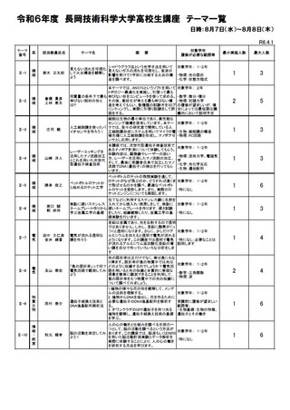 令和6年8月7日(水曜)~8月8日(木曜)に新潟県内の高校1年生,2年生を対象として、「高校生講座 ―大学の研究室で楽しく学ぶ先端テクノロジー―」を開催します。