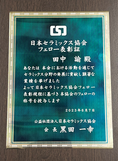 田中諭教授が日本セラミックス協会フェロー表彰を受賞しました。