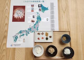 はじめに本学の鎌土学長から、本学の特徴およびものづくり地方都市の持続的発展に向けた取組について説明し、続いて技術科学イノベーション系 小笠原教授からJST共創の場形成支援プログラム(COI-NEXT)に採択された「“コメどころ”新潟地域共創による資源完全循環型バイオコミュニティ拠点」や全国の高専と連携する「発酵を科学するアイデアコンテスト」などの取組を紹介しました。また、本学の研究圃場で栽培し雪室で貯蔵したお米や、コンテストで評価の高かった発酵食品をご試食いただきました。