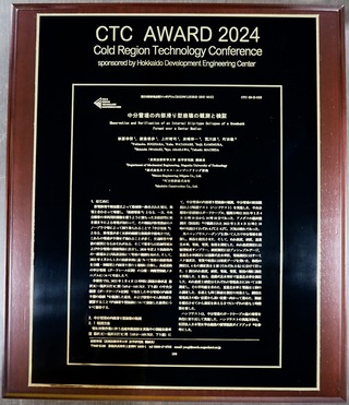 今回の受賞は、2023年に開催された第39回寒地技術シンポジウムにおいて、杉原助教らが発表した論文「中分雪堤の内部滑り型崩壊の観測と検証」が、寒地技術に関する基礎的な部門で成果をあげたと評価されました。2024年11月26日に開催された第40回寒地技術シンポジウム 寒地技術賞表彰式において授与されました。