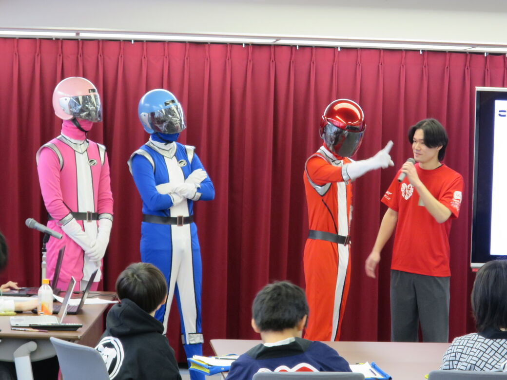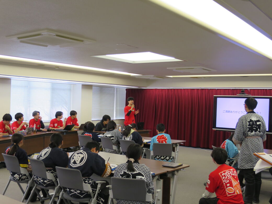 前半は、児童が学んだ深沢地域の祭りに関する発表、技大祭実行委員会による技大祭の運営体制に関する発表を行い、児童からは多くの質問が寄せられました。