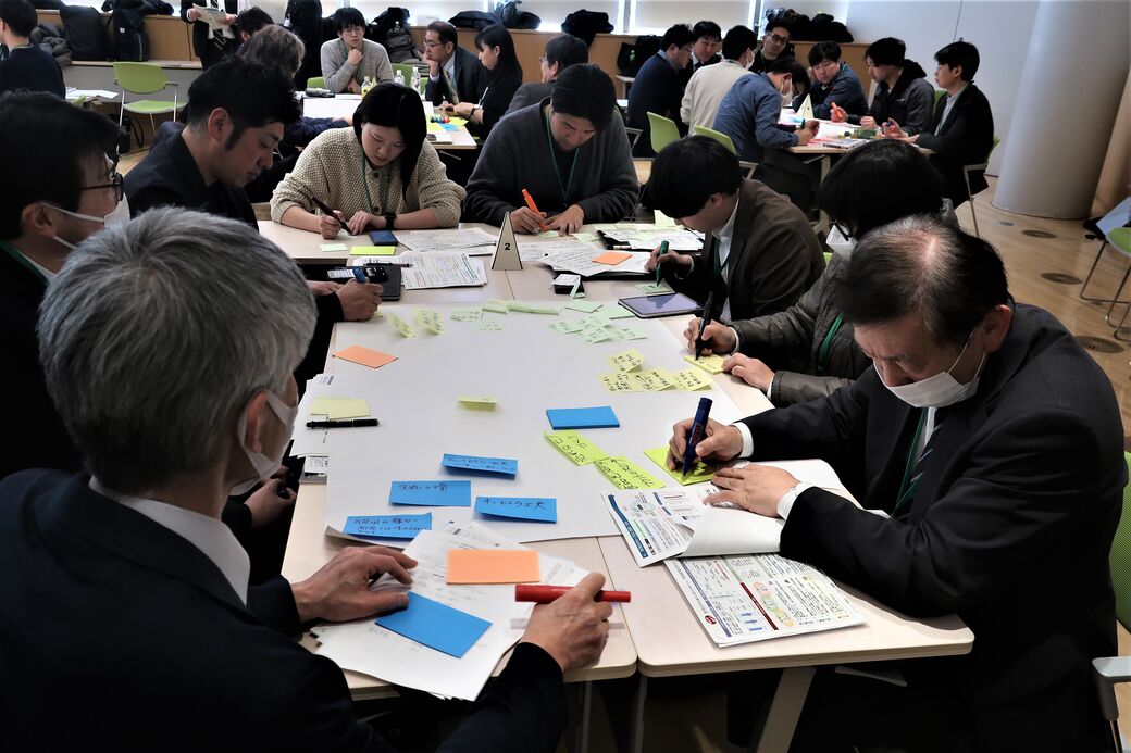 各チームではファシリテーターとプレゼンテーターを本学学生が務め、新発田市職員、商工会議所青年部、市議会議員など地域の有志の他、本学と連携する高専の教員、学生、共同研究企業など、様々なステークホルダーの交流のもと、新発田や新潟の魅力、地域における課題抽出と解決に向けたアイデア出し、事業創生・起業の場の整備、防災力の強化など、活気ある交流の場となりました。