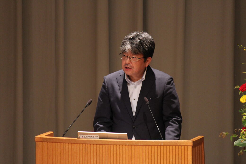 基調講演では、国際協力機構の中村俊之理事長特別補佐より、「アフリカにおける社会変革と長岡技術科学大学への期待~グローバルサウスとの共創社会を目指して~」と題してご講演いただき、様々な課題解決の実証の場であるアフリカ等における本学の取り組みについて、大きな期待が寄せられました。