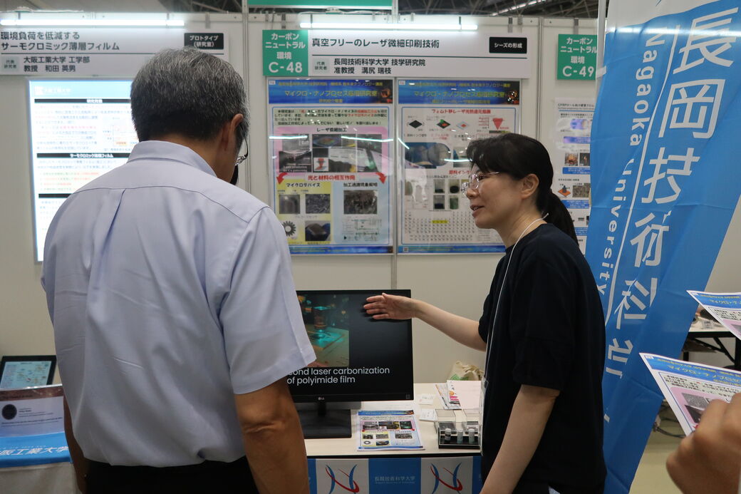 会期中、本学のブースに企業の技術者の方や他大学の研究者の方等、非常に多くの方にお越しいただきました。今後の産学官連携活動につながることが期待されます。