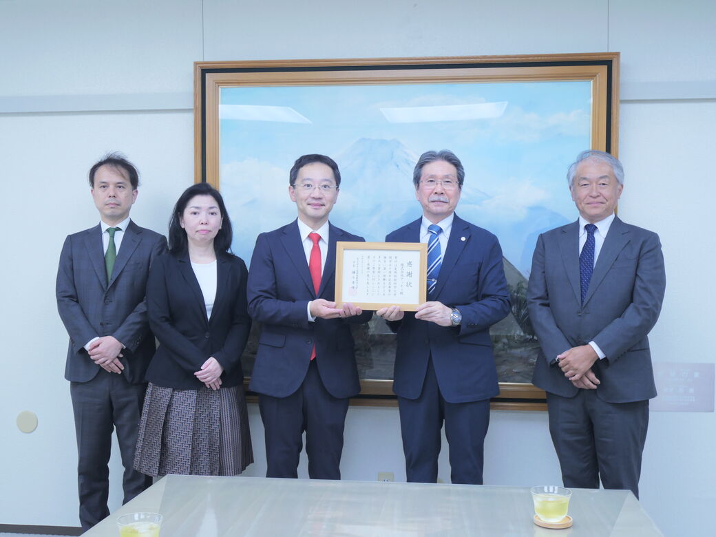株式会社アッチェ様より開学50周年記念事業基金へご寄附を頂戴したことに感謝の意を表し、鎌土重晴学長から同社 南部 景樹代表取締役社長へ感謝状を贈呈いたしました。