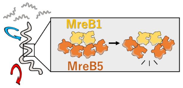- MreB1が、もう1つのMreB(MreB5)の繊維構造をコントロールしていることが分かり、複数のタンパク質が働きあうことで細菌が動くメカニズムを提唱しました。