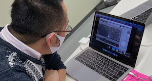 また、宮技術職員が2人の学生へレーザーラマン分光装置(JASCO/NRS-7200)の講習を行いました。3密回避のため、装置の立ち上げ、サンプル導入、立ち下げを共に行い、測定中は1人は別室にて遠隔で講習を受けました。