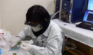 また、長岡技科大の小杉技術職員と本事業コーディネーターの片桐教授のサポートのもと、ウルトラミクロトーム(Leica/EM UC7)を操作しサンプルを加工しました。