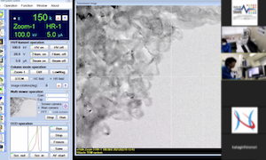 長岡技術科大において、本事業により設置した半遠隔操作システムを用いて透過電子顕微鏡(Hitachi/HT7700)の依頼分析を行いました。機器室内での人の密集を避けるため、TV会議システムのZoomを用いて電子顕微鏡の画面を共有しながらオンラインでディスカッションを行い協働的に分析を進めました。遠隔操作システムを活用することにより、3密を避けながらの研究活動を支援しています。