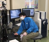 豊田技術専門職員が機器オペレーターを担当し、本事業コーディネーター佐藤教授と本学の齊藤(信)准教授も参加して測定方法等議論をしながら観察を行いました。
