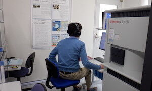喜多准教授が機器を操作し、zoomを用いて観察画面を共有して対話をしながら測定を行いました。